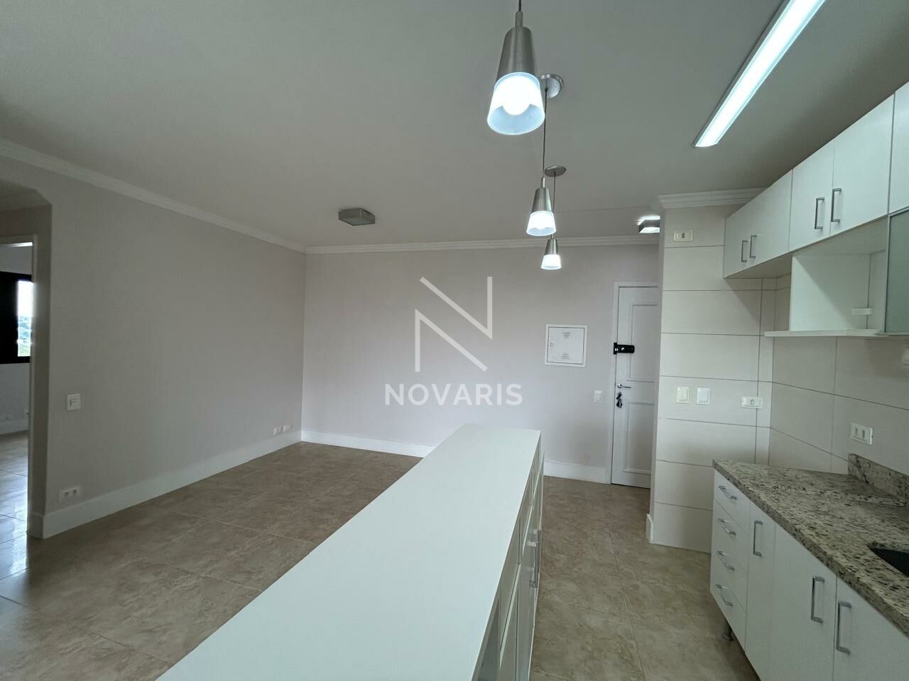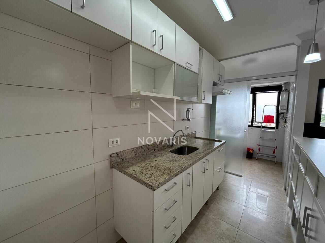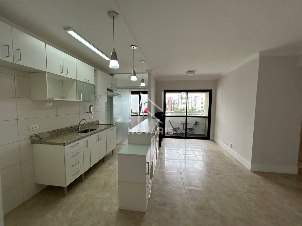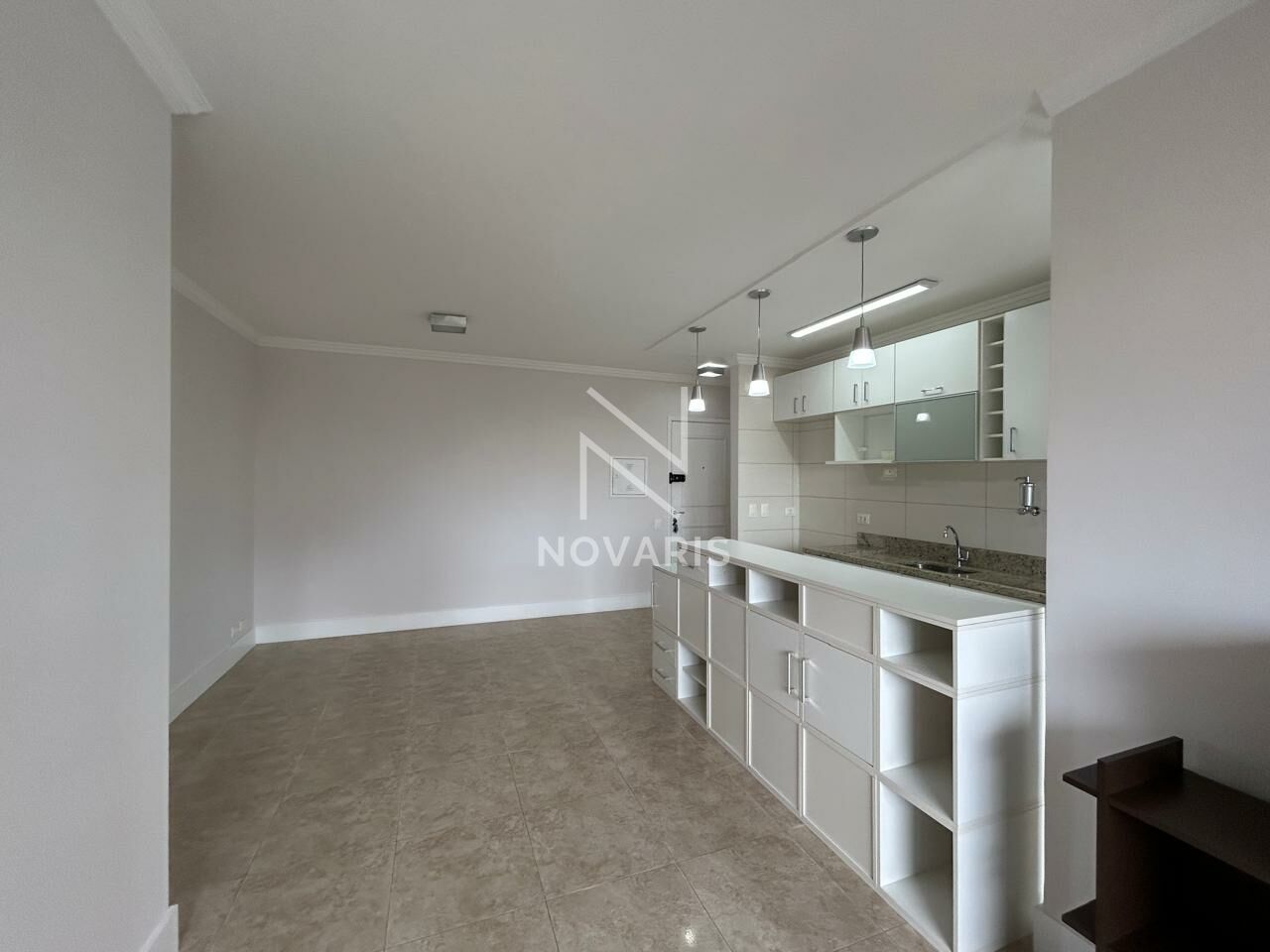 Apartamento com 60m² útil, sala para dois ambientes, sacada, 2 dormitórios sendo 1 suíte com armários e sacada, cozinha americana com armários, 1 banheiro social com armários e box.