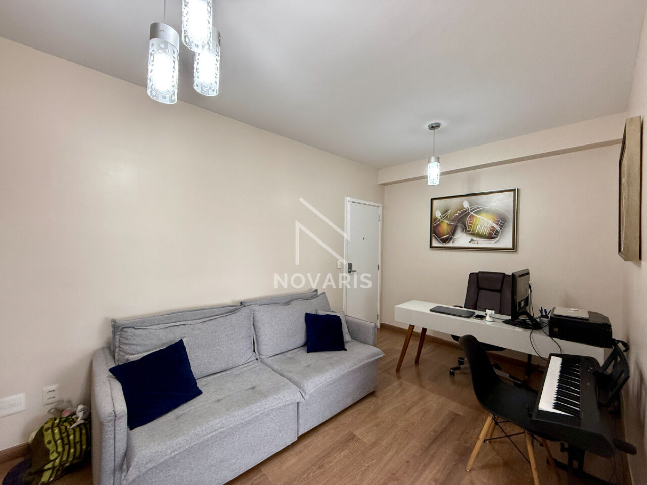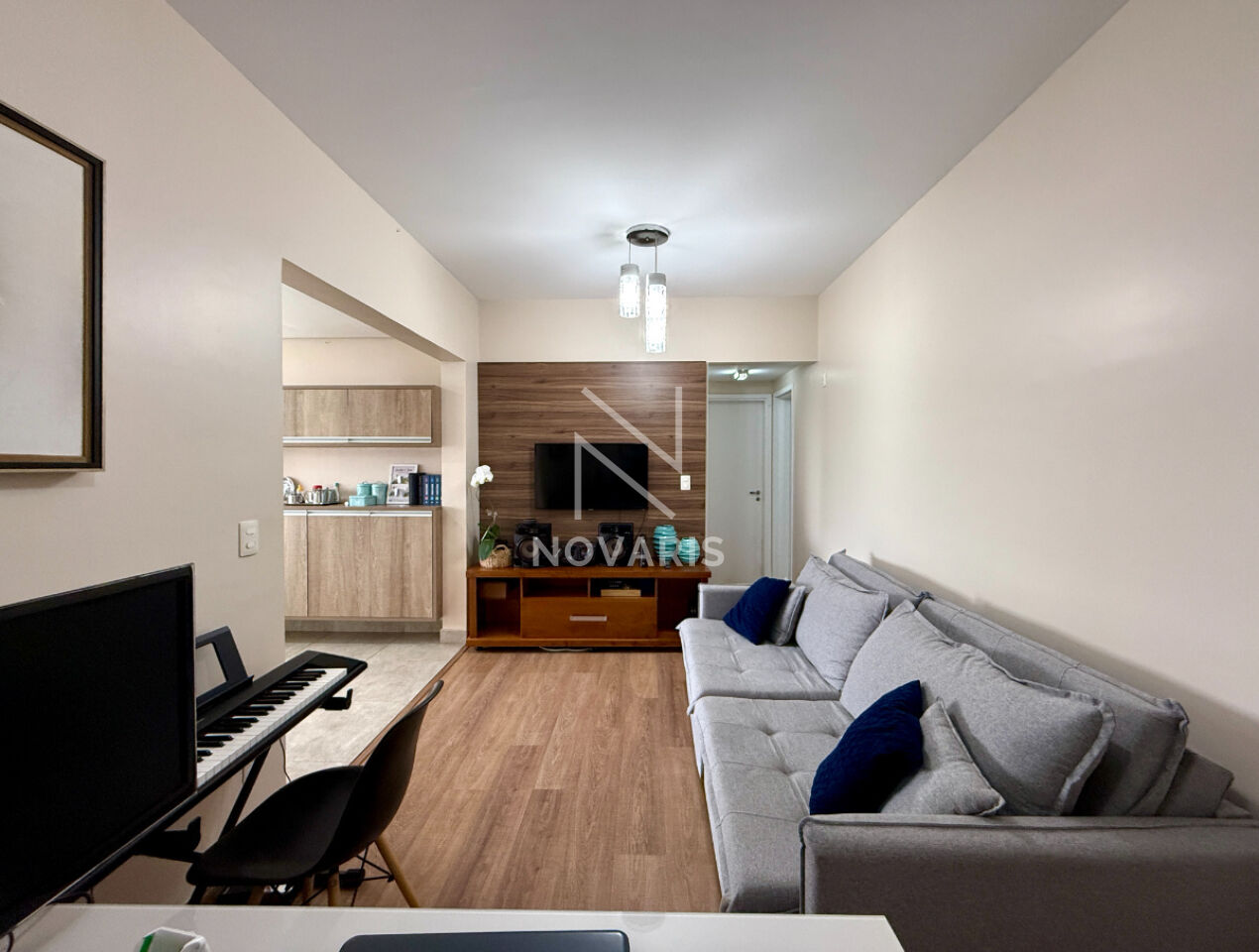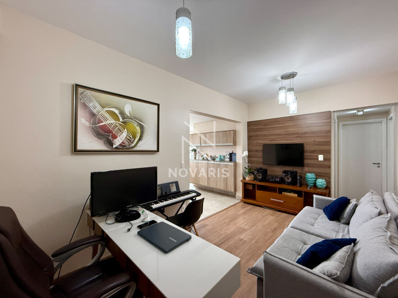 Planta Funcional de 76,50m²: Com 2 dormitórios (sendo 1 Suíte), a distribuição é ideal para integração de ambientes.