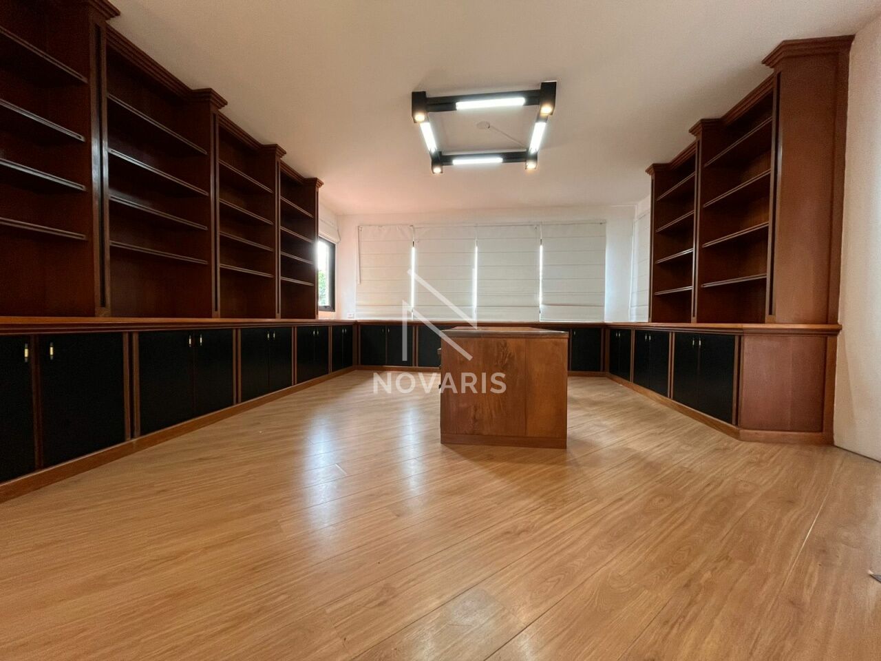 O terceiro andar oferece um grande salão com armários planejados, ideal para escritório, biblioteca ou ambiente de estudos, garantindo tranquilidade e funcionalidade para o dia a dia.