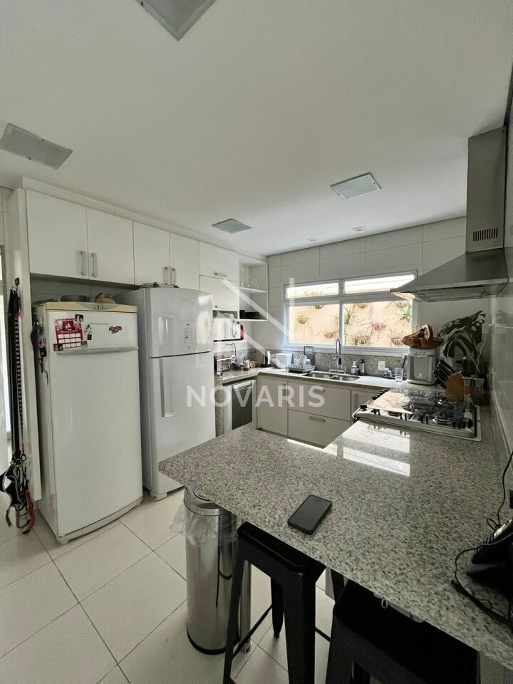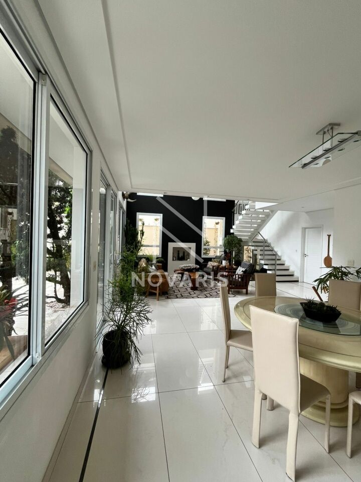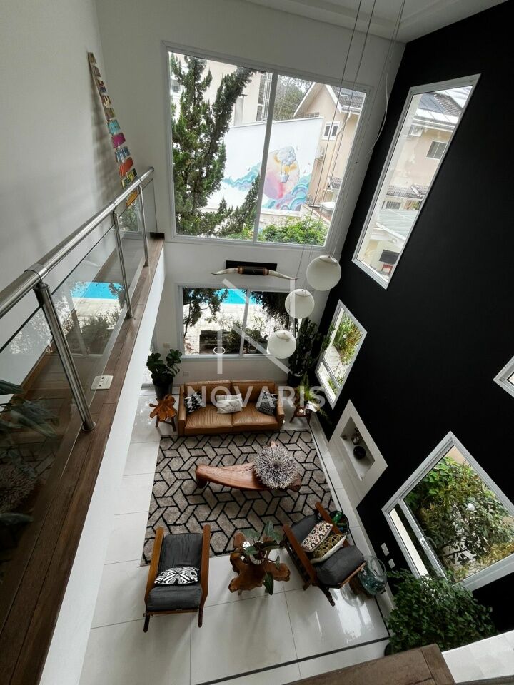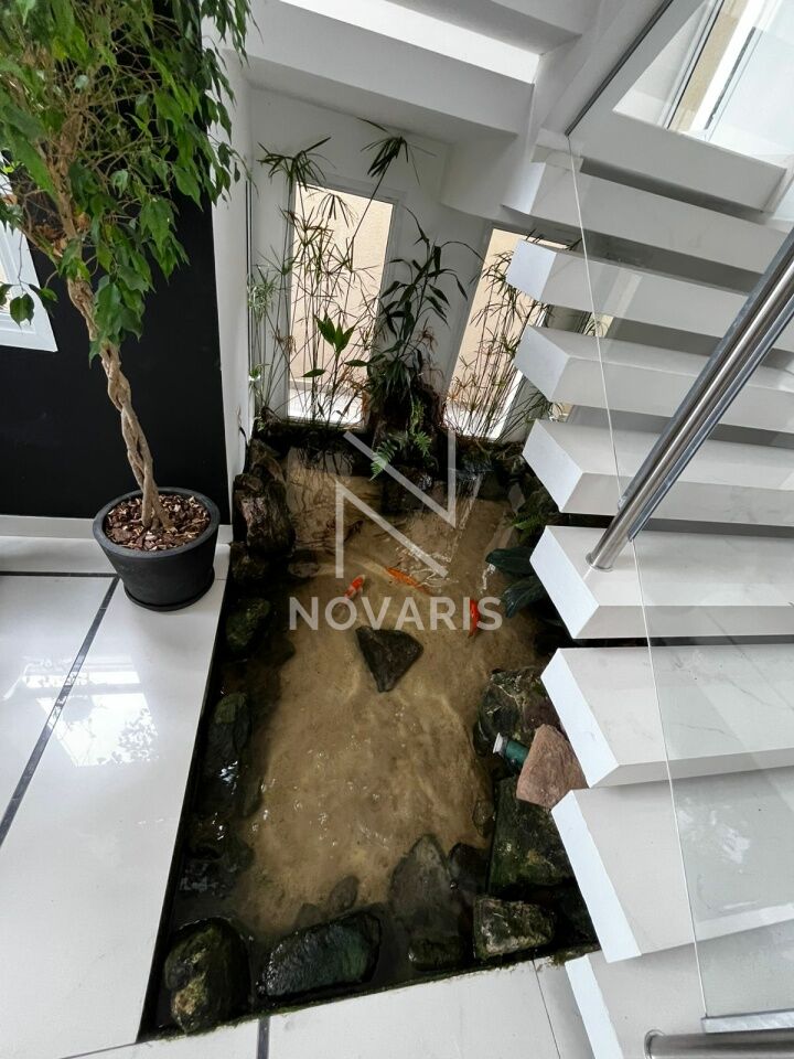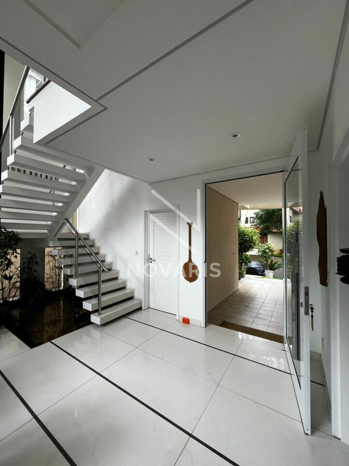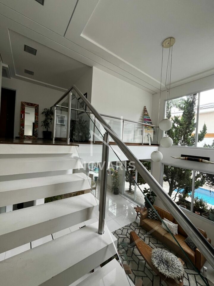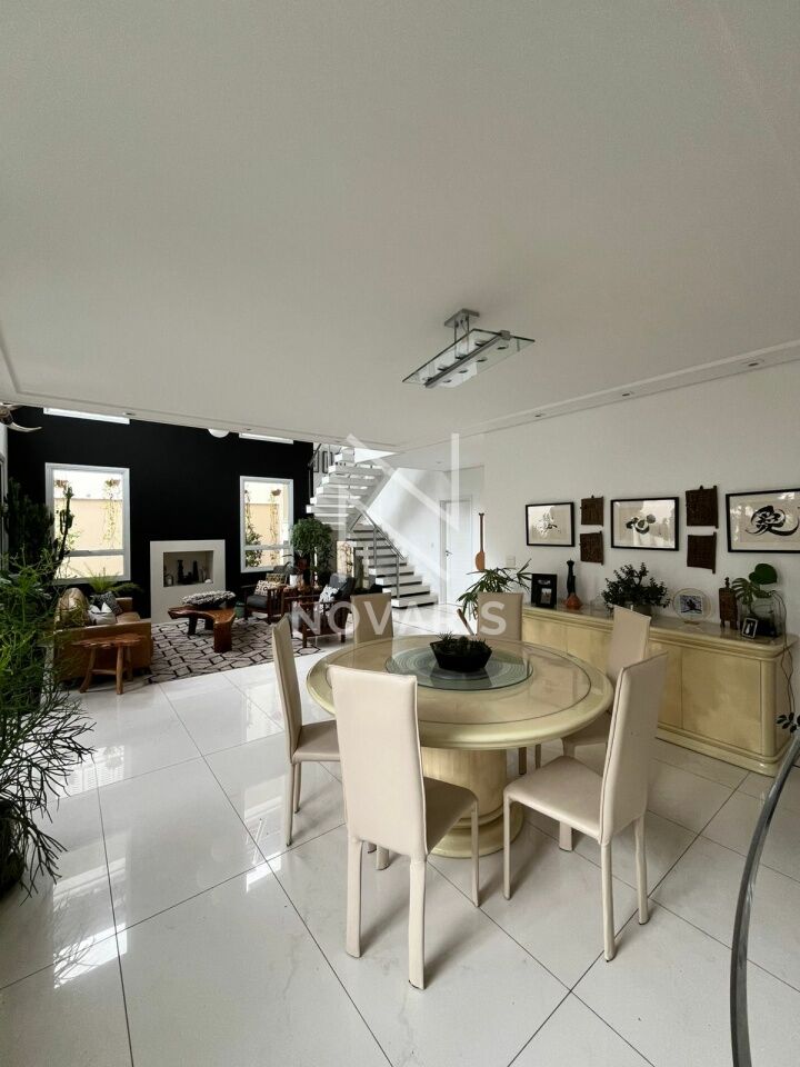 O imóvel conta com três suítes amplas, sala no piso superior, living com pé direito duplo e lareira, proporcionando elegância e excelente iluminação natural. A cozinha é espaçosa e funcional, e há suíte destinada a funcionário.