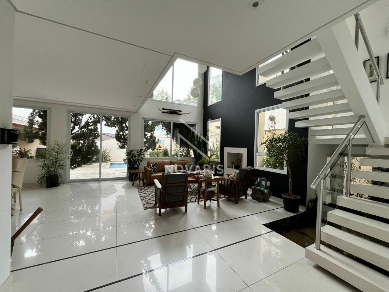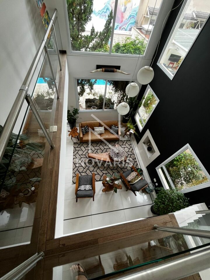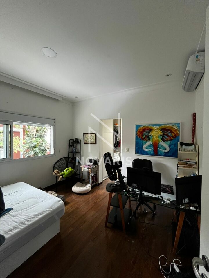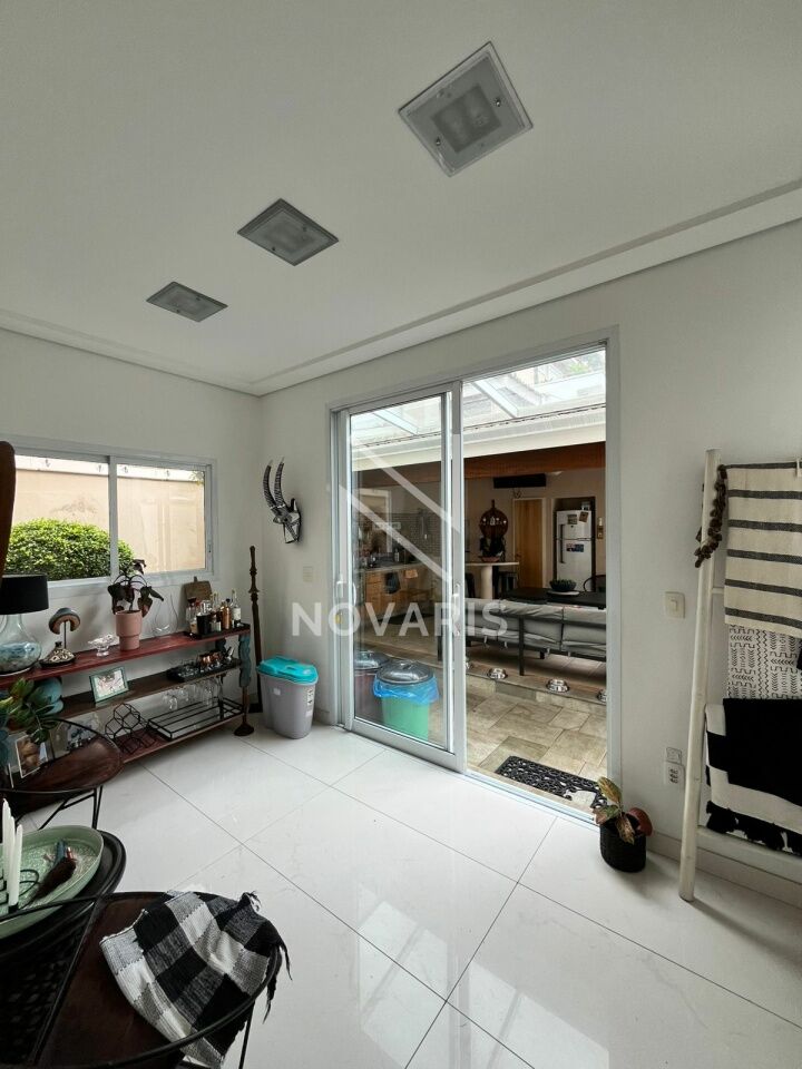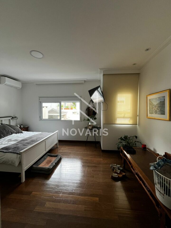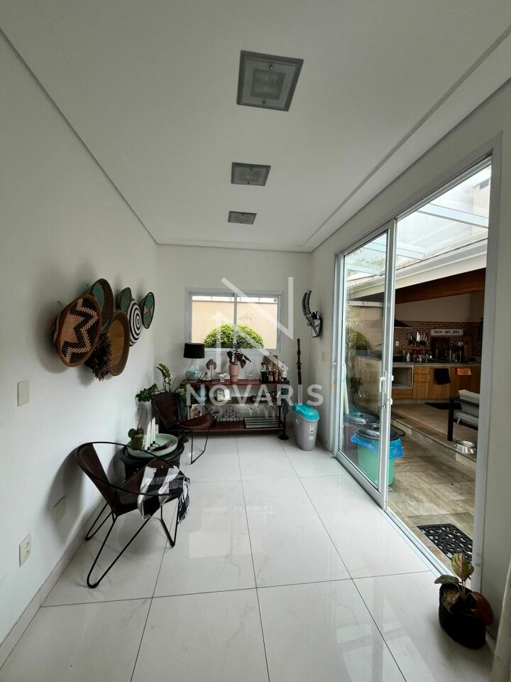 O imóvel conta com três suítes amplas, sala no piso superior, living com pé direito duplo e lareira, proporcionando elegância e excelente iluminação natural. A cozinha é espaçosa e funcional, e há suíte destinada a funcionário.