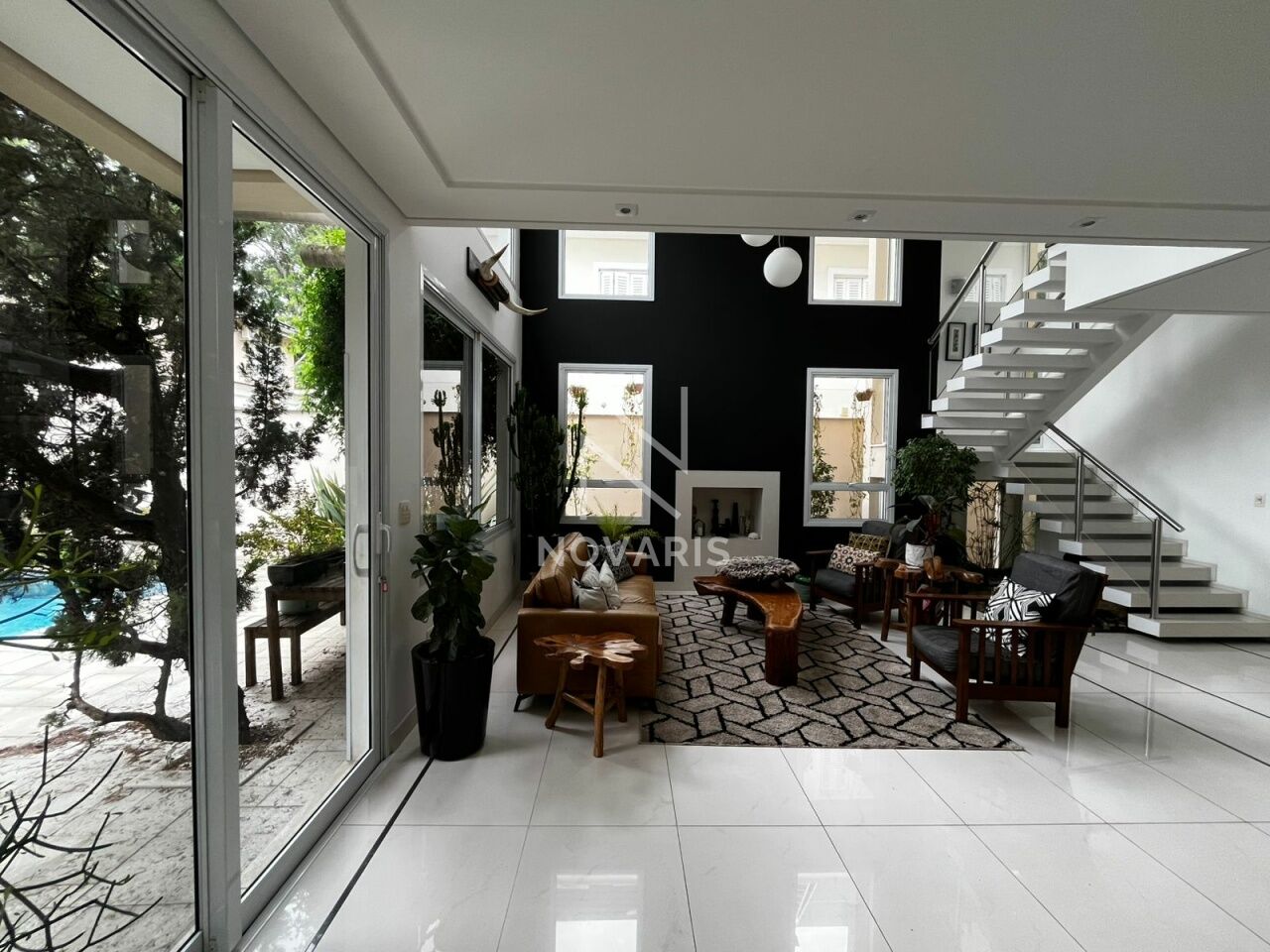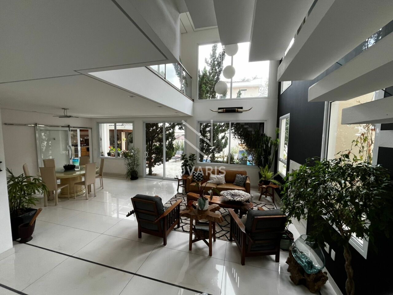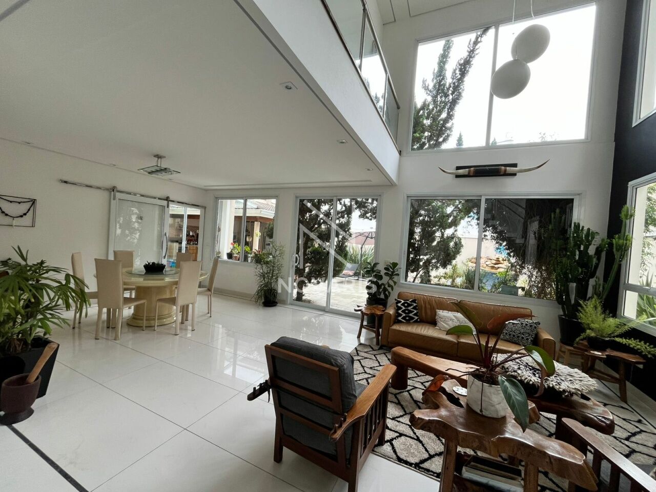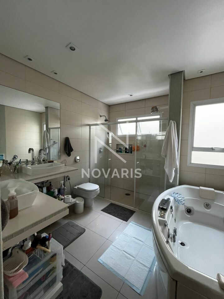 O imóvel conta com três suítes amplas, sala no piso superior, living com pé direito duplo e lareira, proporcionando elegância e excelente iluminação natural. A cozinha é espaçosa e funcional, e há suíte destinada a funcionário.
