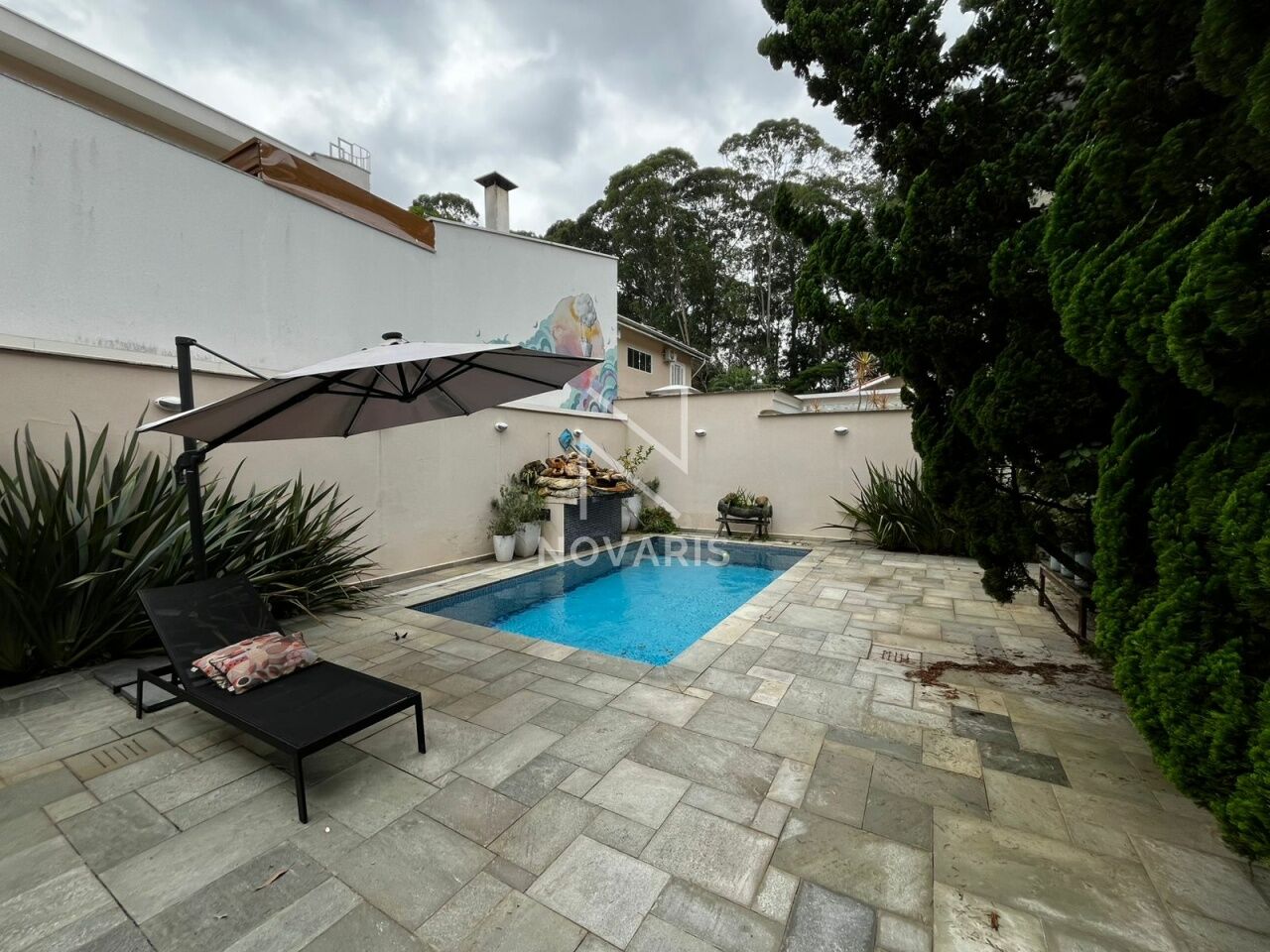 Na área externa, o lazer é completo, com piscina, churrasqueira e banheiro de apoio para piscina e churrasqueira.