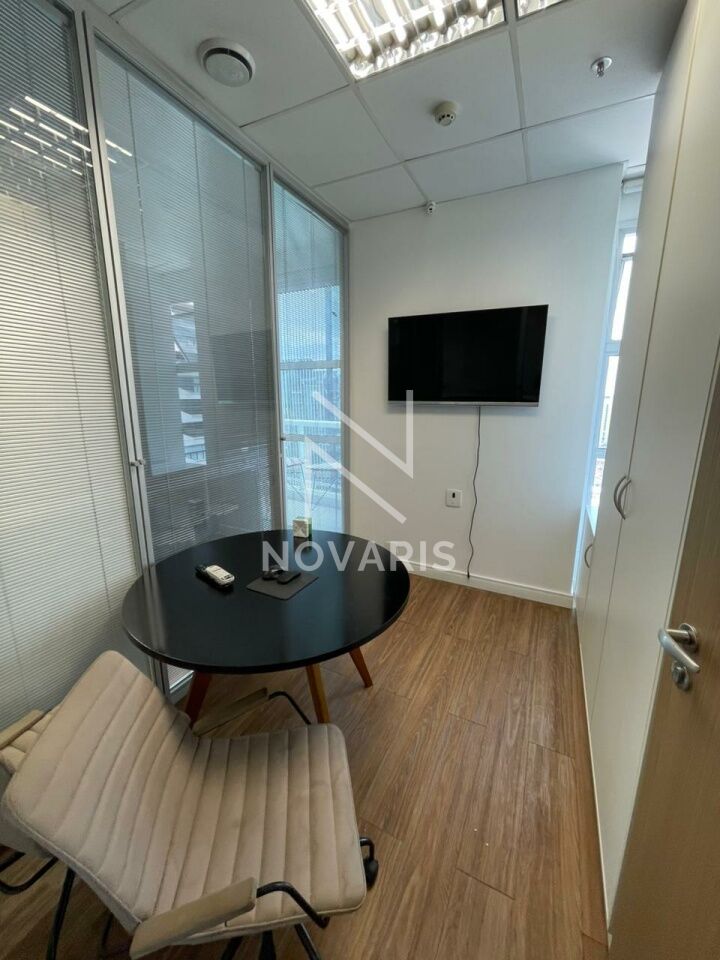 O espaço conta com piso elevado revestido em laminado, ar-condicionado instalado, sala de reunião com divisórias, mesa e cadeiras, além de lavabo privativo, oferecendo praticidade e conforto para o dia a dia corporativo. Ideal para escritórios, consultorias e empresas que buscam eficiência e uma localização estratégica.